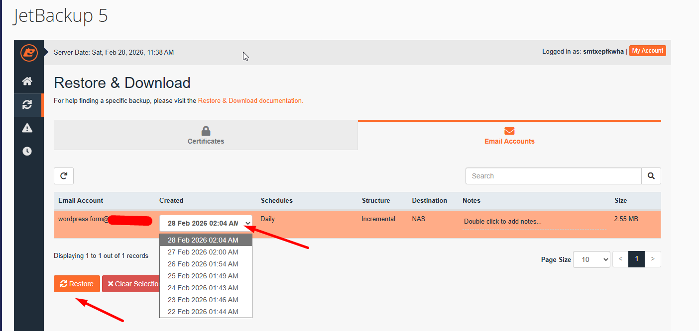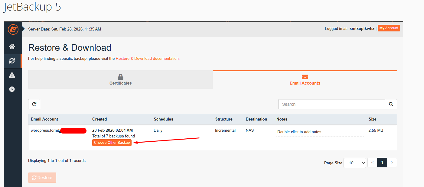 Hướng dẫn Restore dịch vụ Email Pro với JetBackup 5