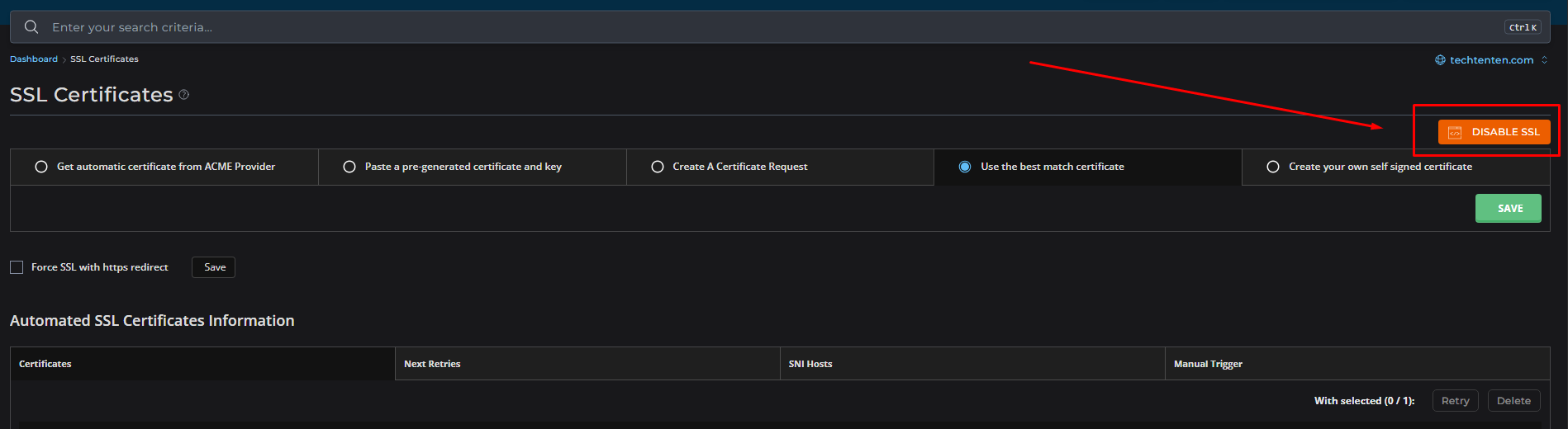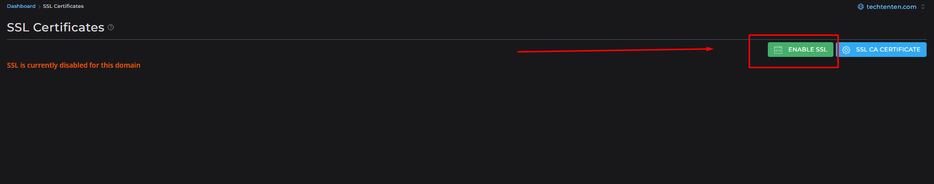 Bước 2: Quay lại SSL Certificates để bật SSL