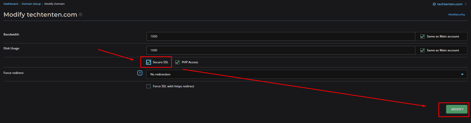 Trên DirectAdmin Shared WordPress Hosting, SSL có 2 lớp kiểm soát: